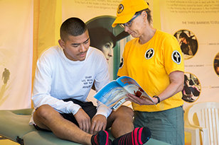 Саентологических волонтёры предоставляют ассисты, чтобы принести спортсменам облегчение и успех.